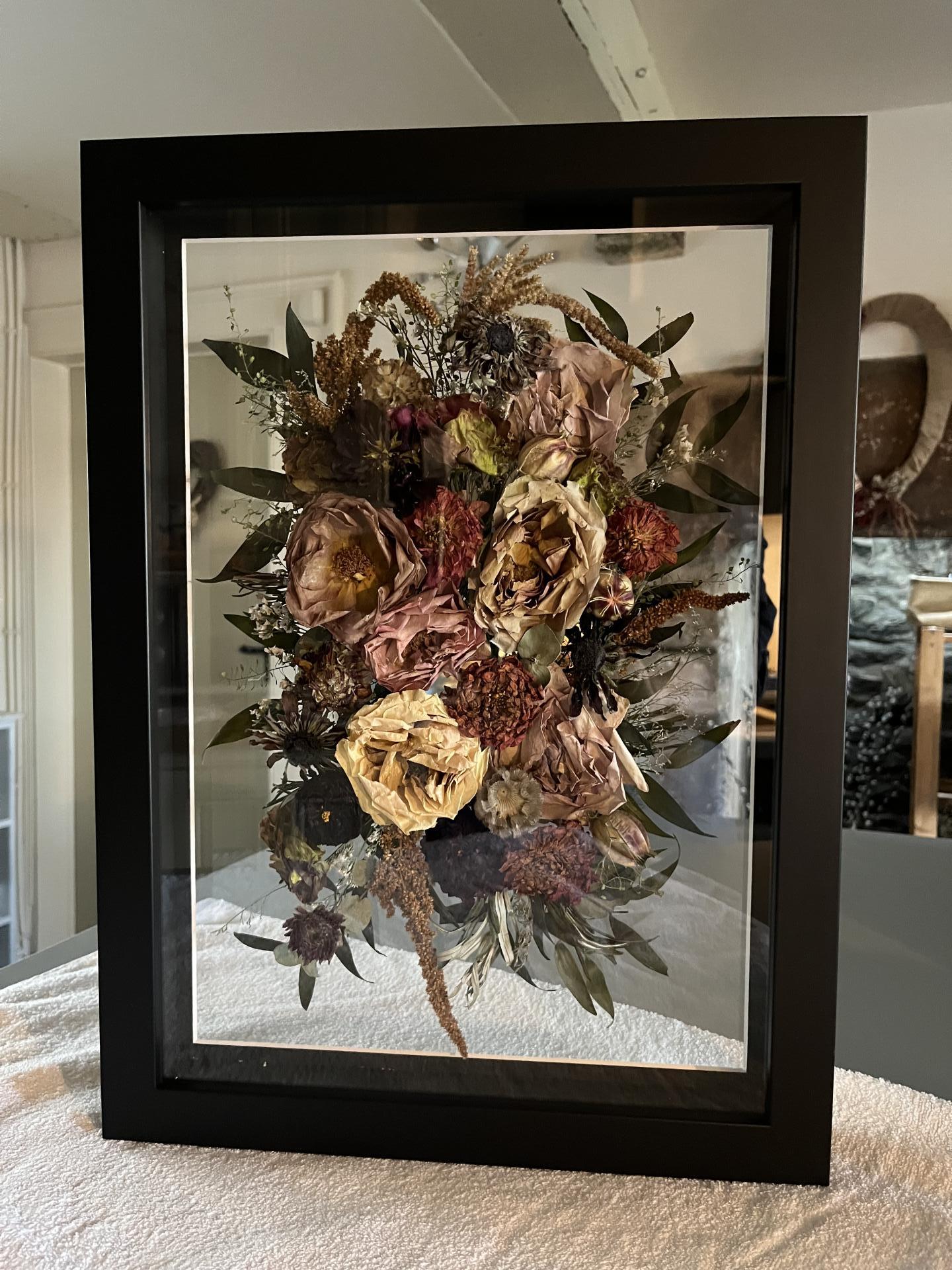 I have had the best possible experience dealing with Sally.One of our daughters got married in September and our other daughter was a bridesmaid. I wanted to have their bridal bouquets made into dried floral art in floating frames. Peter at the Frame shop in Skipton made bespoke frames for me and Sally painstakingly preserved the flowers and then created stunning displays with them. I picked up the two incredible pieces today. They are absolutely amazing. Soon my daughters will have the most beautiful gifts to hang on their walls and have something to treasure from the beautiful wedding. I could not recommend Sally more highly or thank her enough for what she has done. I will be a regular customer from now on. Thank you again Sally.